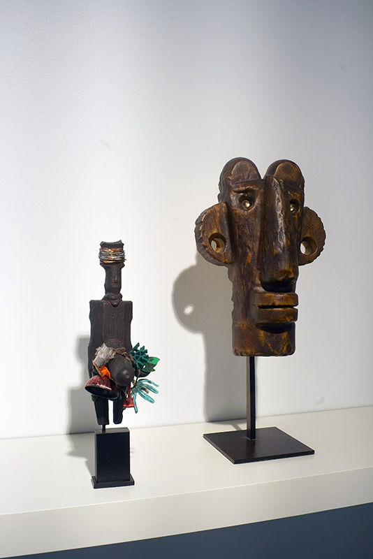 Plus loin, trois autres étagères (rayons de supermarchés ?) présentent des « Idoles » qui pourraient venir tout droit du Musée du Quai Branly, collections africaines.