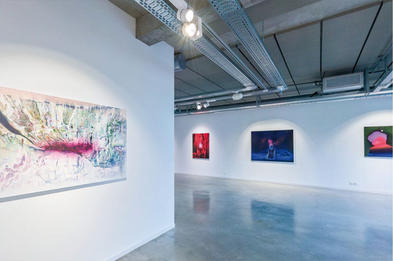 L’évolution de ses peintures ne se fait pas de façon linéaire, mais à l’image des rhizomes, c’est un réseau de scènes qui fait apparaître une histoire plus globale, un langage obscur. Ses images allégoriques fonctionnent sur le mode du jeu de carte. Ses peintures sont modulables, et selon l’ordre d’accrochage, suggèrent une narration à chaque fois différente. Anatomie, rêve et religion se mêlent pour former un film mystérieux…